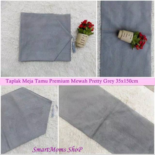 TAPLAK MEJA TAMU MINIMALIS MODERN PRETTY GREY 35X150 . Sumber Gambar : shopee.co.id