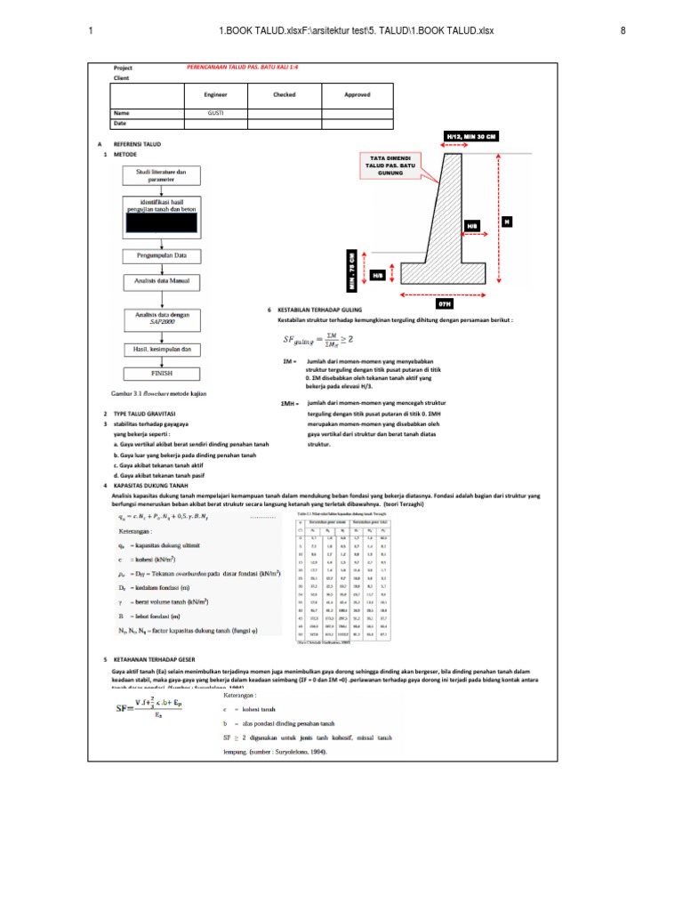 Perhitungan Excel Struktur Dinding Penahan Tanah